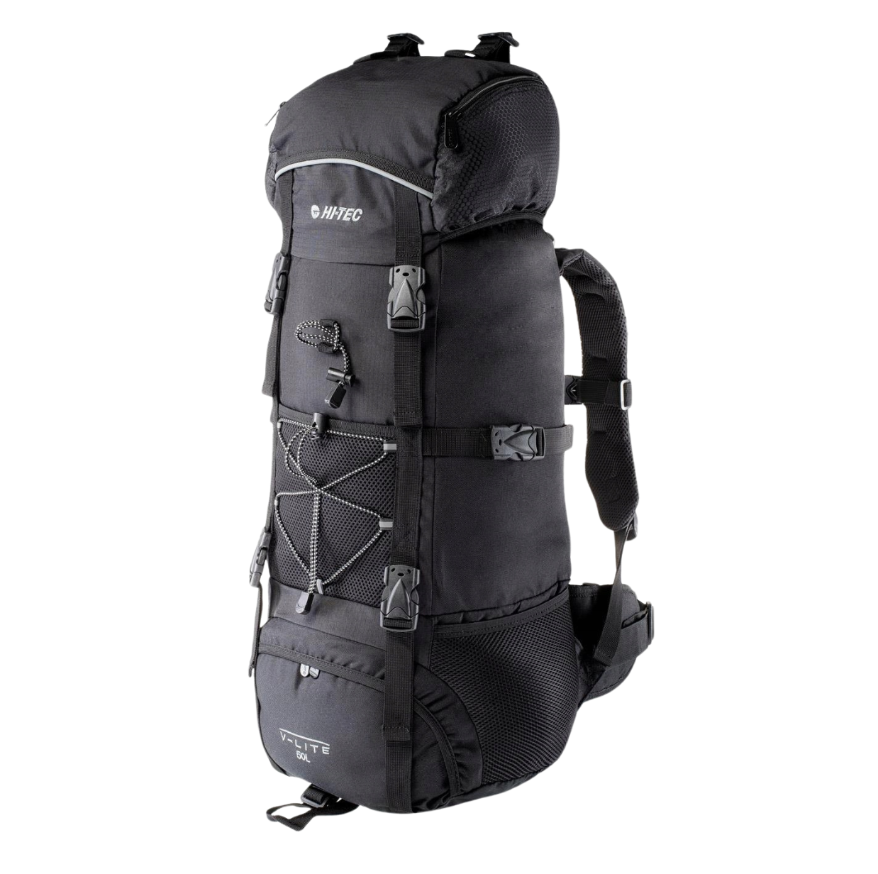 Dolna przegroda na podwójny kryty zamek pozwala dzielić obszerną komorę na dwie niezależne części. Praktyczne dodatkowe kieszenie pozwalają tak rozmieścić drobne przedmioty, by mieć je łatwo dostępne. Zewnętrzne uchwyty oraz przednia linka mocująca pozwalają przytroczyć kije do chodzenia, karimatę i inne akcesoria bez konieczności zajmowania przestrzeni wewnątrz plecaka. Dzięki pasom kompresyjnym obciążenie jest równomiernie rozkładane i pozwala zmniejszać objętość plecaka gdy nie jest w całości wypełniony.